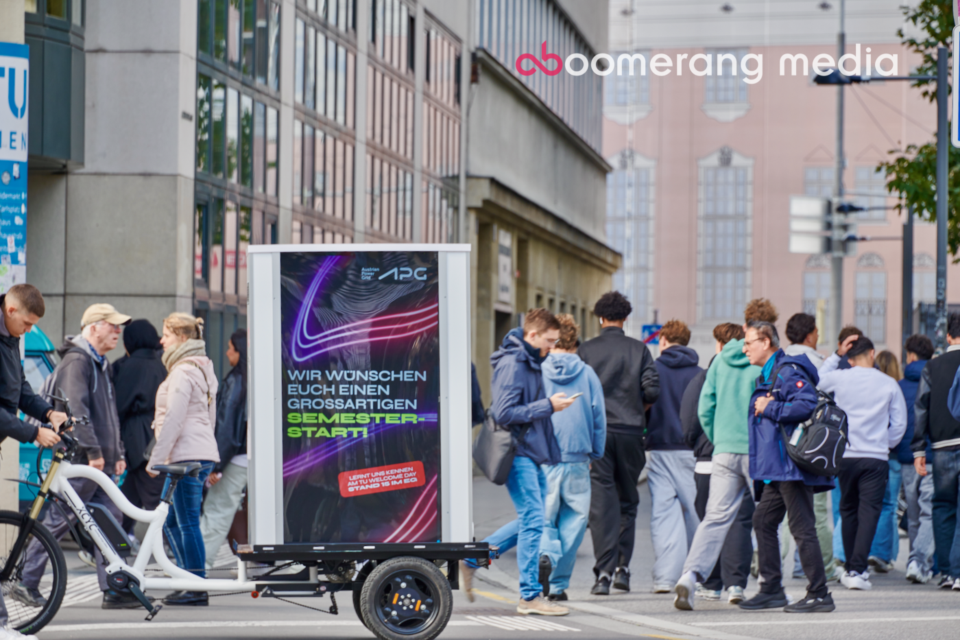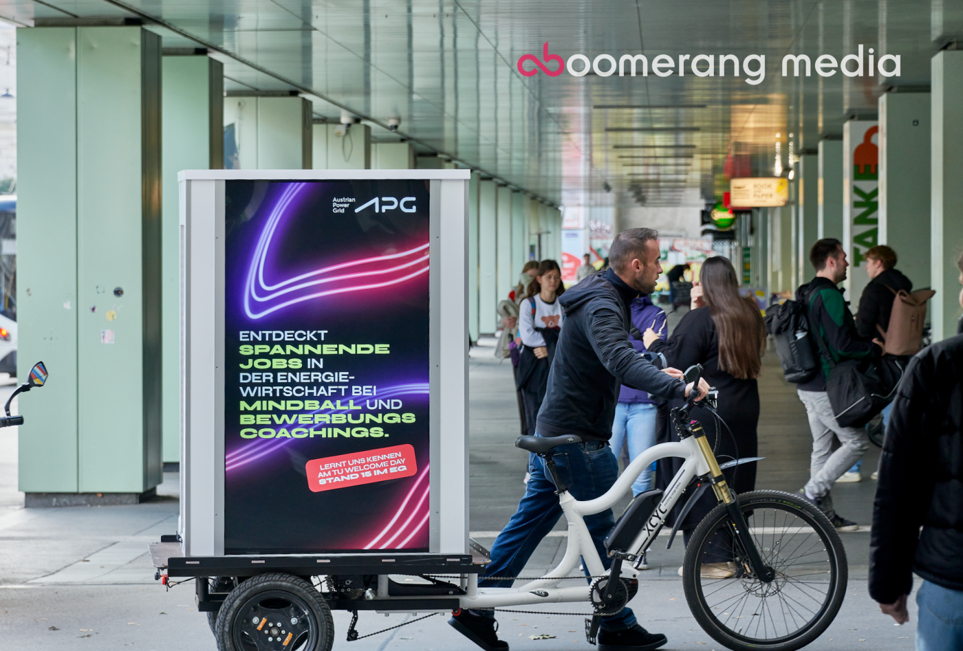 StudentInnen der TU Wien freuen sich über einen besonderen Energie-Schub: Austrian Power Grid sagt „Hallo“ beim Semester Welcome Day.