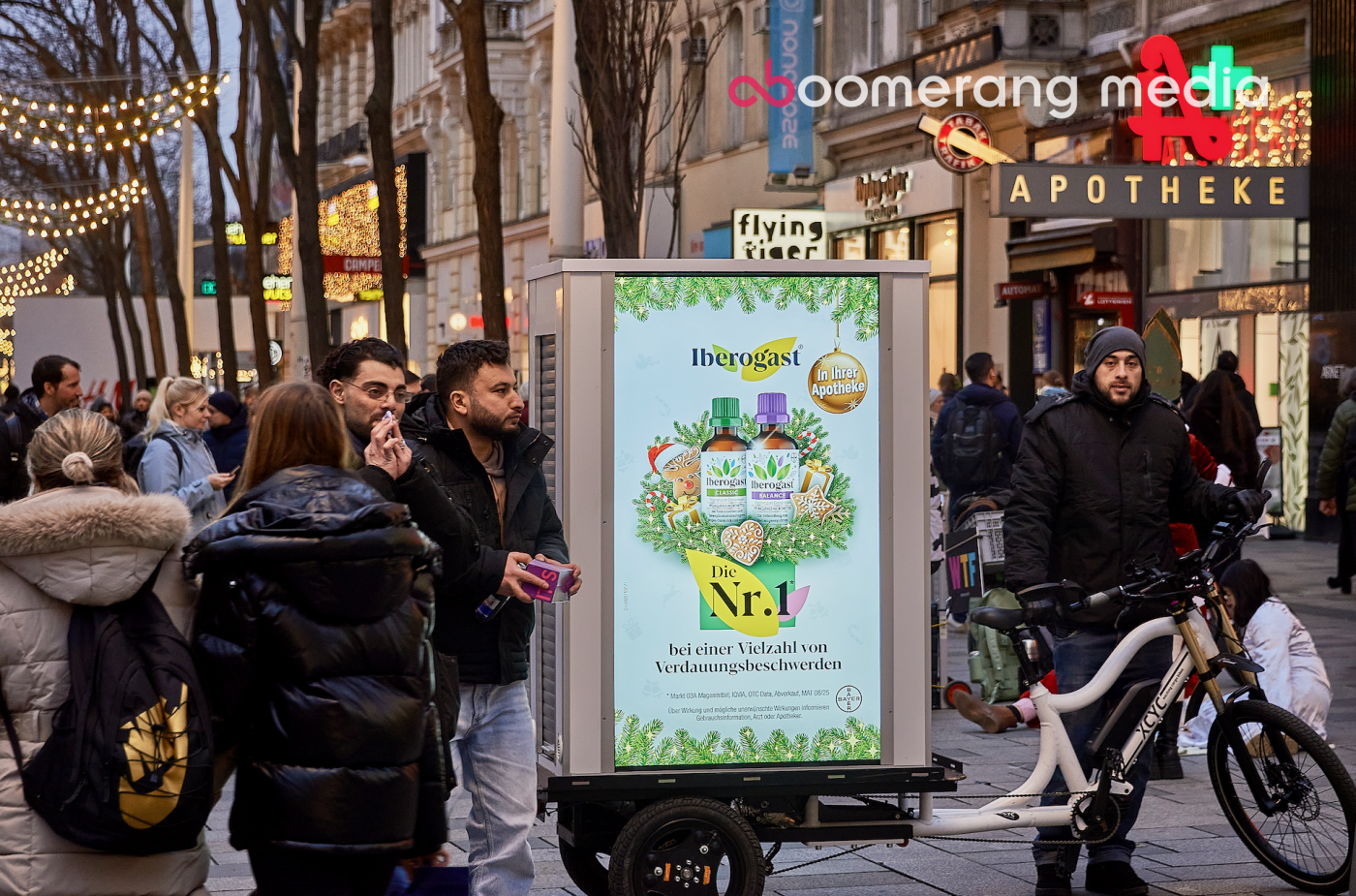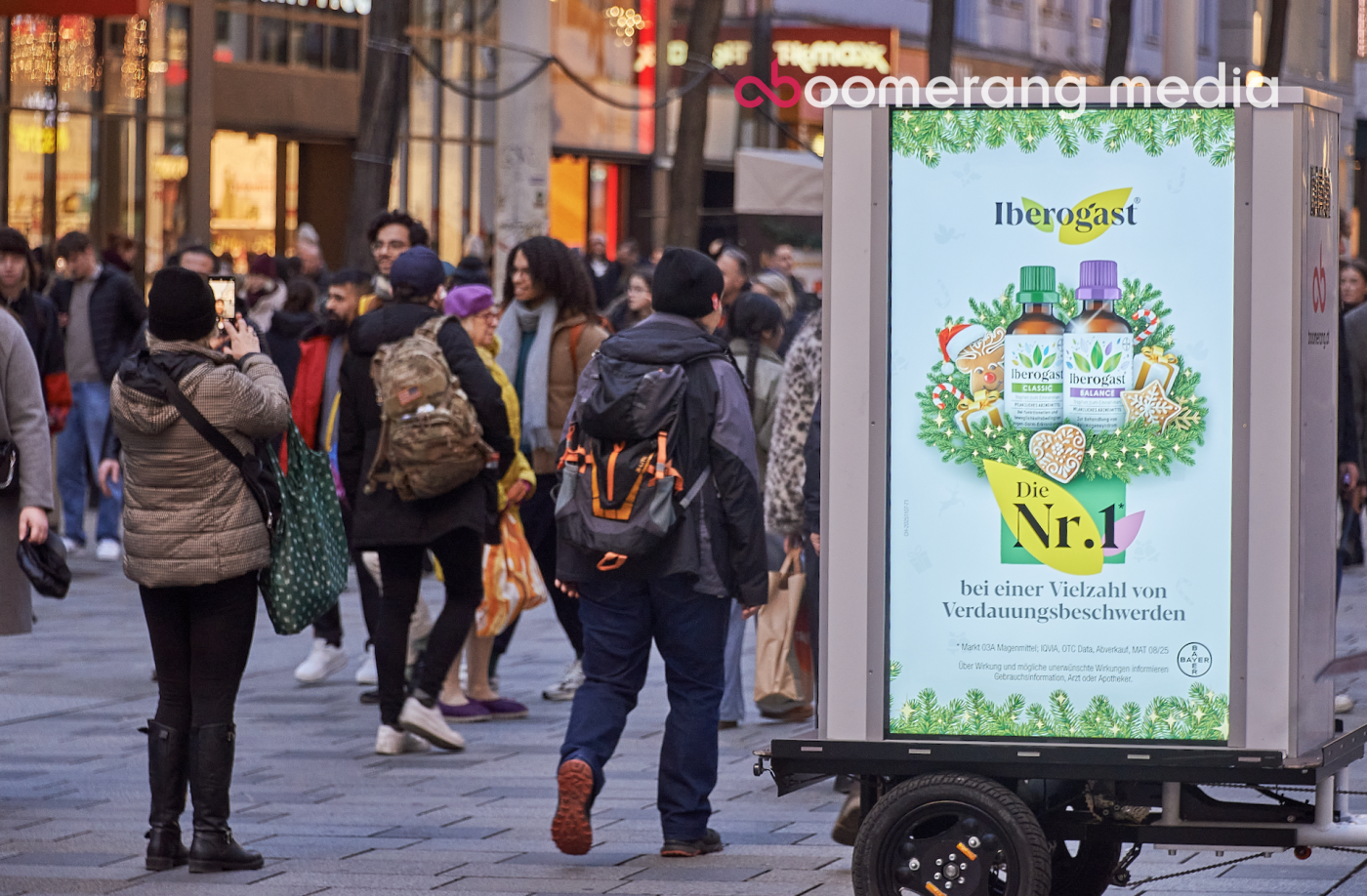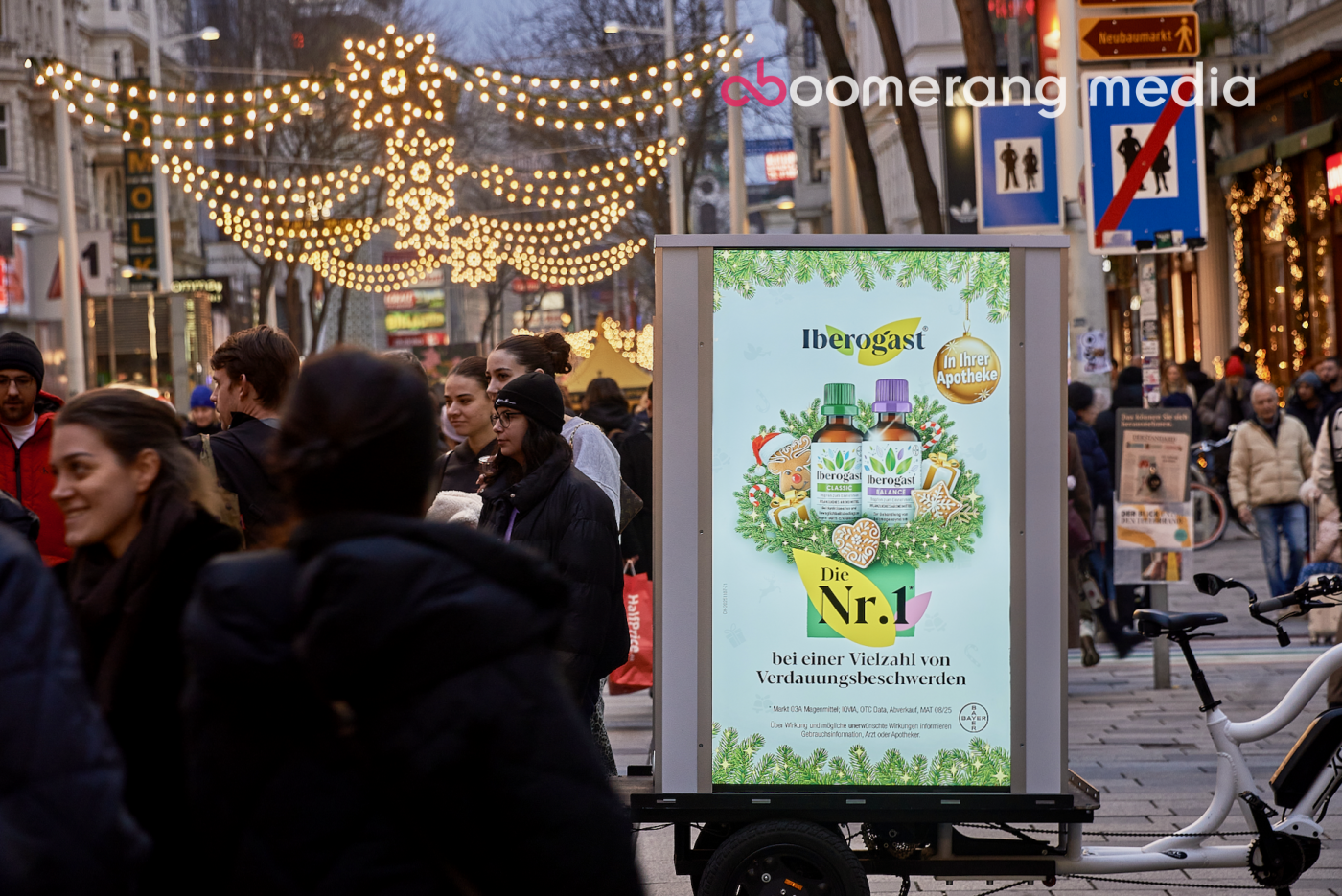 Kekse, Festtagsbraten, Glühwein, nochmal Kekse – damit dir das alles nicht auf den Magen schlägt, gibt’s Iberogast. Dass diese No. 1 in Sachen Bauchweh gegen Völlegefühl und andere Magenbeschwerden hilft, sagt man am besten dort, wo es entsteht: beim Christkindlmarkt.